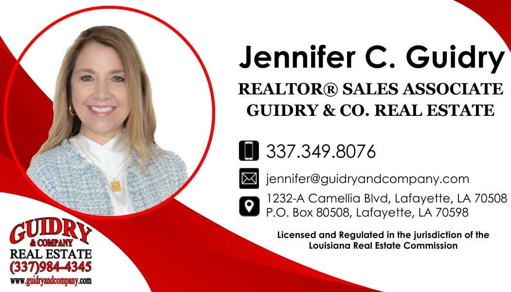 Jennifer is looking forward to leveraging her skills and dedication to assist you in achieving your real estate goals—whether you’re buying, selling, or leasing. She’s here to make the process as smooth and stress-free as possible. As a graduate of the University of Louisiana at Lafayette, she holds a degree in Business Administration and Management and has over 23 years of experience in the medical industry, most recently as the Director of Growth and Development. This extensive background has equipped her with a strong foundation in problem-solving, strategic thinking, and exceptional client service. With a keen eye for detail and a passion for real estate, Jennifer is committed to helping her clients find the perfect home, land, or commercial property. Her strong analytical background ensures she can provide clear, data-driven insights to help buyers and sellers make informed decisions throughout the process. Jennifer was raised in Acadiana, has been married to her husband Keith for over 35 years, and has raised two wonderful children. She just recently welcomed her first grandchild! Family is the cornerstone of Jennifer’s life, and she looks forward to helping others find their perfect home!